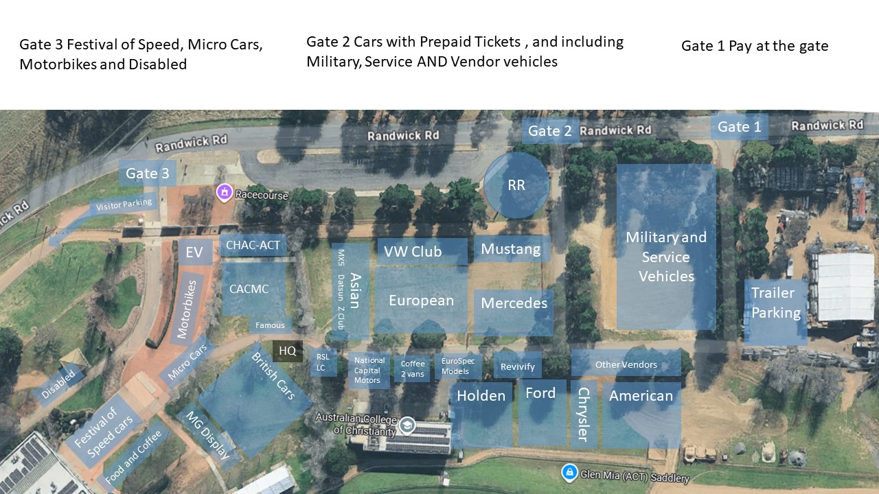- For a Club to display their members' vehicles together, they should arrive and enter as a group, i.e. in convoy!